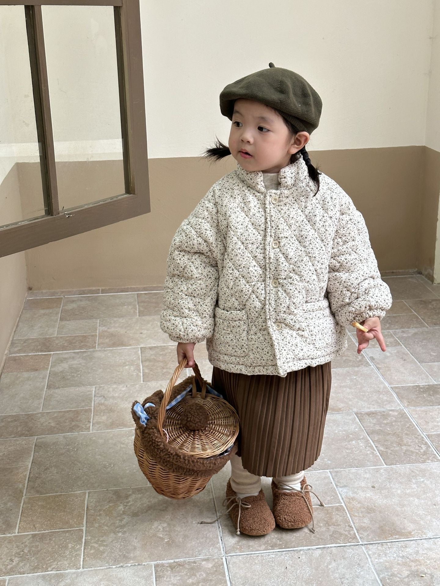 Girls Padded Cotton Clothes Fleece Thickened Floral Kids' Overcoat